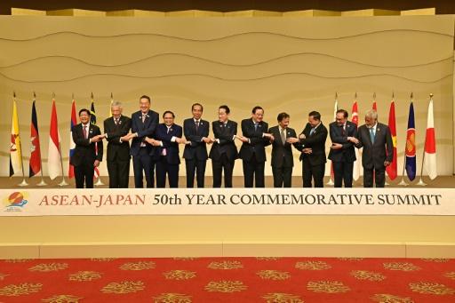 زعماء الدول الأعضاء في رابطة دول جنوب شرق آسيا (آسيان) في صورة جماعية قبل محادثاتهم في الدورة الخمسين للصداقة والتعاون بين اليابان والآسيان في طوكيو في 17 كانون الأول/ديسمبر 2023.